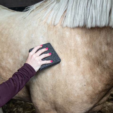 De poetsblok paard draagt bij aan een schone en gladde vacht.