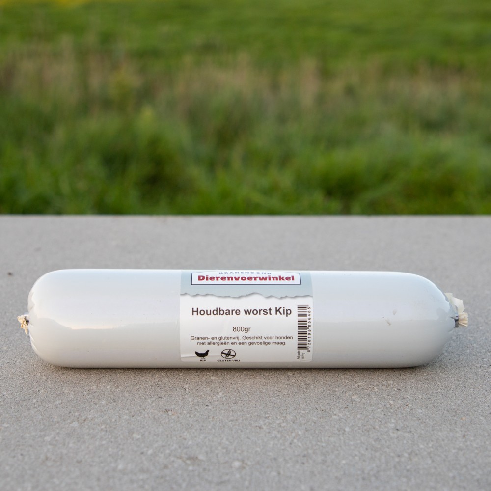 De houdbare worst in de smaak kip is geschikt om af en toe een maaltijd mee te vervangen of je kunt de worst in plakken snijden om te geven als traktatie.
