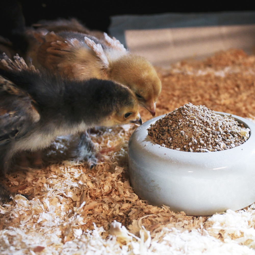 Aangeraden wordt kuikens de kuikenkruim tot ongeveer zes weken te geven.