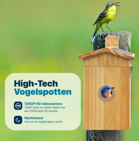 Wat deze nestkastje echt bijzonder maakt, is de ingebouwde 1080p HD camera en audiofunctie.
