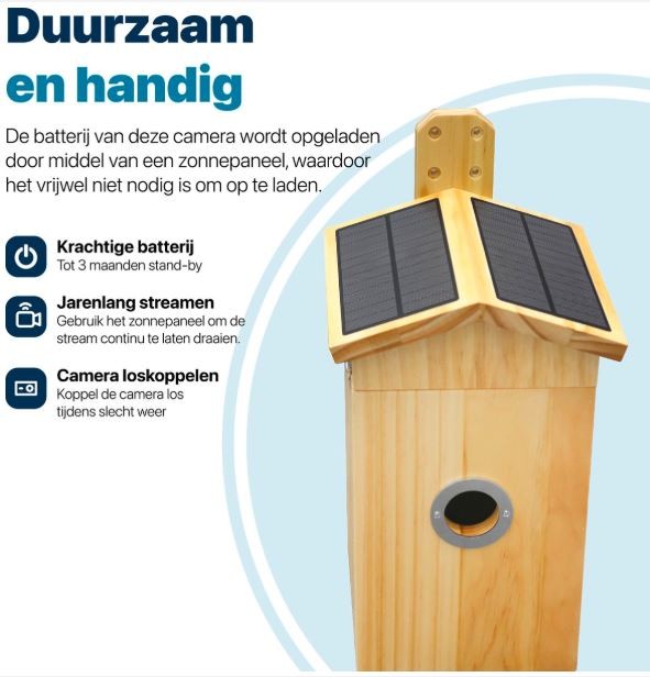 Of je nu een ervaren vogelliefhebber bent of gewoon wilt genieten van het kijken naar vogels in je tuin, dit nestkastje biedt een unieke kans om de natuur van dichtbij te ervaren!
