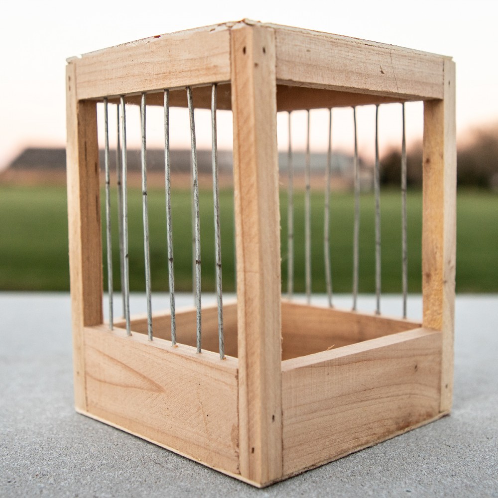 Dit houten nestkastje heeft een afmeting van 11,5 x 11,5 x 12.8 cm